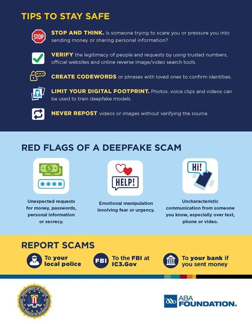 - ABA Foundation, FBI release infographic on deepfake scams